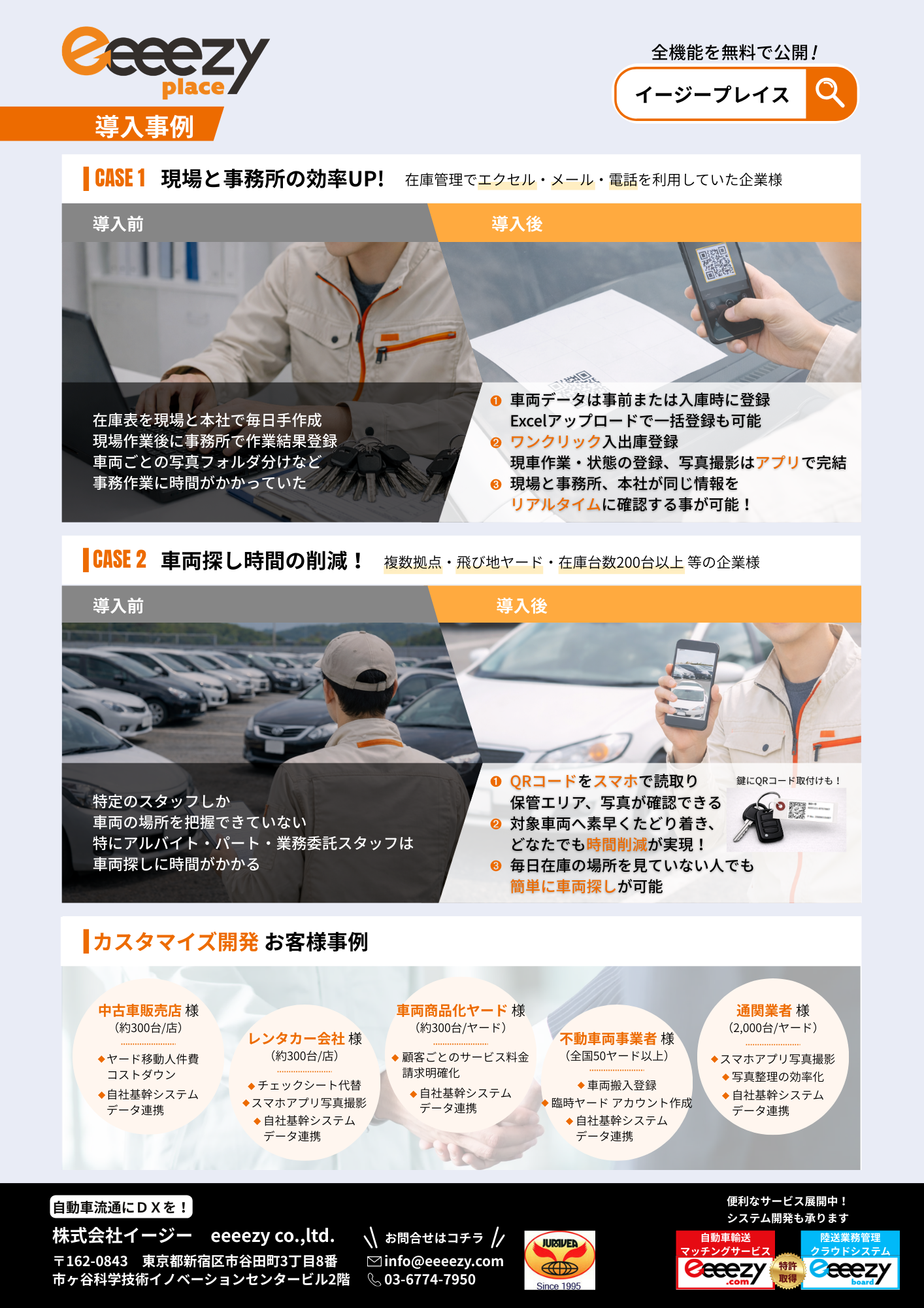 HOME > eeeezy place > eeeezy place 自動車在庫管理システム eeeezy place 資料ダウンロード 2026年2月26日 2026年3月30日 自動車在庫管理システム eeeezy place pdf資料ダウンロードはこちら 自動車在庫管理システム eeeezy place pdf資料ダウンロードはこちら eeeezy place関連記事 【自動車在庫管理システム】eeeezy placeの新規登録完全ガイド eeeezy place導入事例:新車輸送会社N様 現場作業の効率化 ユーストカーNEWSにeeeezy placeが掲載されました クラウド型自動車在庫管理システム eeeezy place リリース 自動車陸送マッチングサービス ヤード・店舗向け在庫・工程管理システム 陸送業務管理クラウドシステム メールマガジンの登録はこちら Twitter Share Pocket Hatena LINE URLコピー -eeeezy place